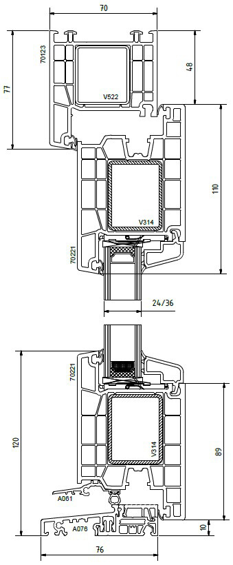 - Haustürsystem mit 70 mm Basis-Bautiefe