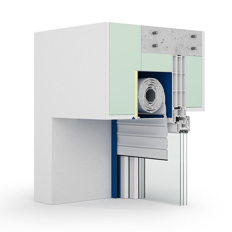 - Wahlweise mit PVC-Rollladenprofilen oder mit Aluminium Rollladenprofilen ausgeschäumt